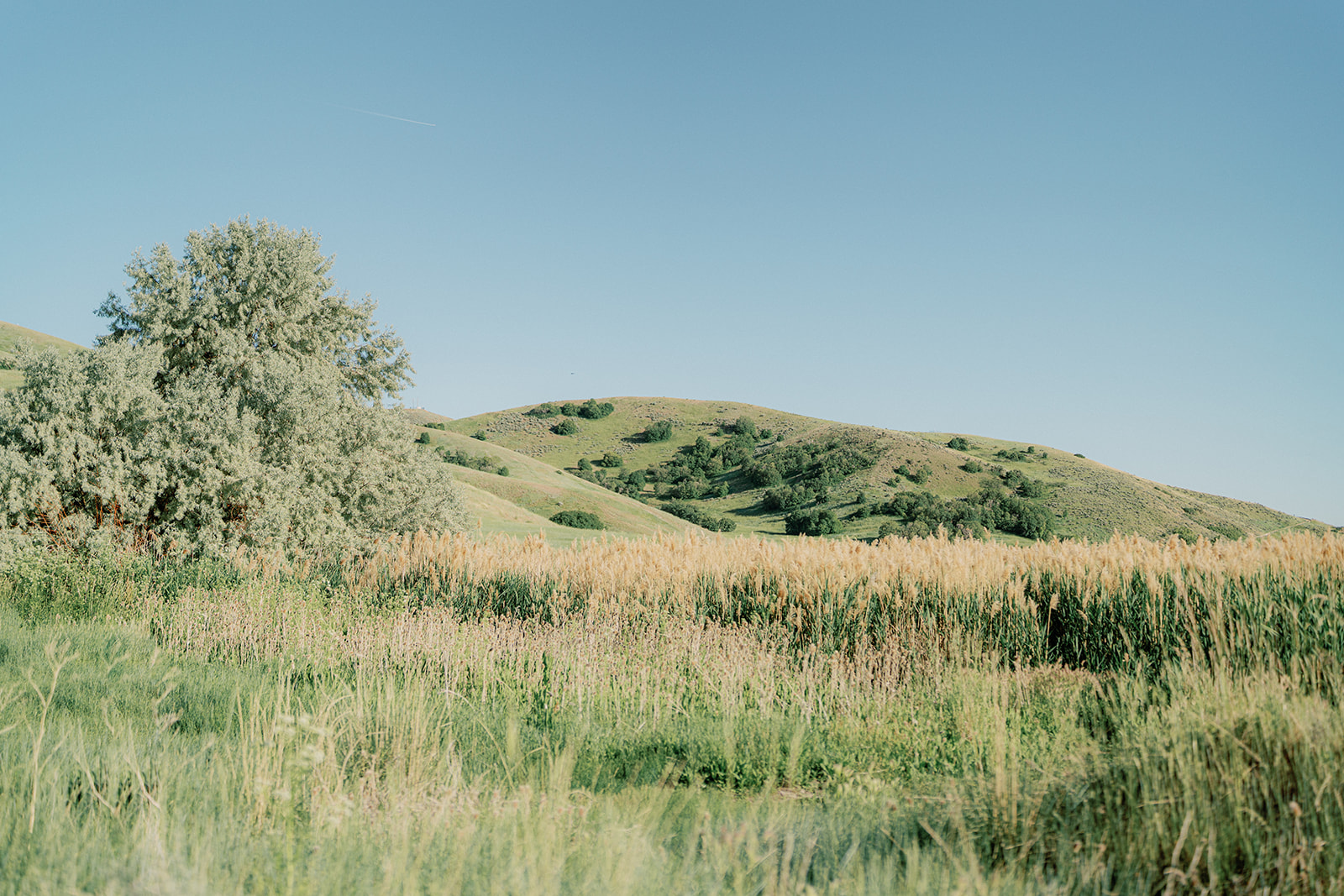 Rolling greens leading toward mountains—a pastoral, peaceful feel. Wardrobe that suits rustic or modern romance works well here; think natural textures and warm neutrals. Best light is around spring’s fresh greens and golden-hour warmth. With this being an East facing location, I suggest planning a sunrise or early morning session for this specific location. Another one of the stunning photo locations in Utah is Tunnel Springs, where nature meets romance.