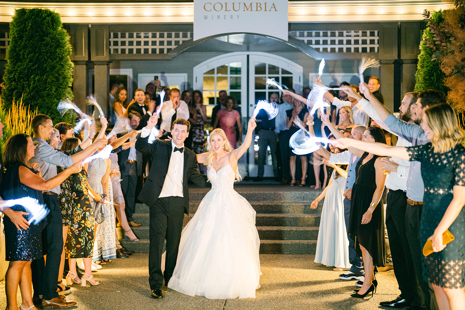 If you really want sparklers, pick 36-inch wedding sparklers — they burn longer and photograph beautifully.