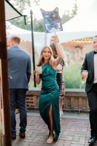 Personal touches in your wedding send off ideas can leave a lasting impression on your guests. One idea that I love for the end of the night is to have a cutout of a pet or person (like the bride and groom) and use them as a prop for the dance floor. Here is an example of what that looks like.