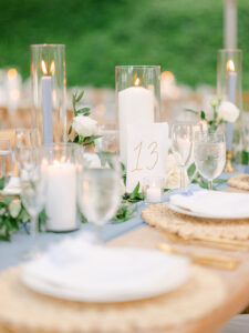 The outdoor spaces also work beautifully for cocktail hours, allowing guests to move through the gardens and vineyard areas while enjoying passed appetizers and wine from the estate’s own production. This use of the outdoor environment during the cocktail hour gives guests the opportunity to truly experience and appreciate the property in a way that is relaxed, celebratory, and deeply enjoyable.