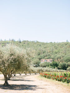 The gardens at Allegretto are another defining feature of the grounds. Meticulously maintained and richly planted, the gardens incorporate roses, lavender, olive trees, citrus, herbs, and a wide variety of flowering plants that contribute color, fragrance, and texture to the landscape throughout the year. The garden environments create intimate, beautiful spaces that serve as natural ceremony backdrops, cocktail hour settings, and portrait locations for photographers.