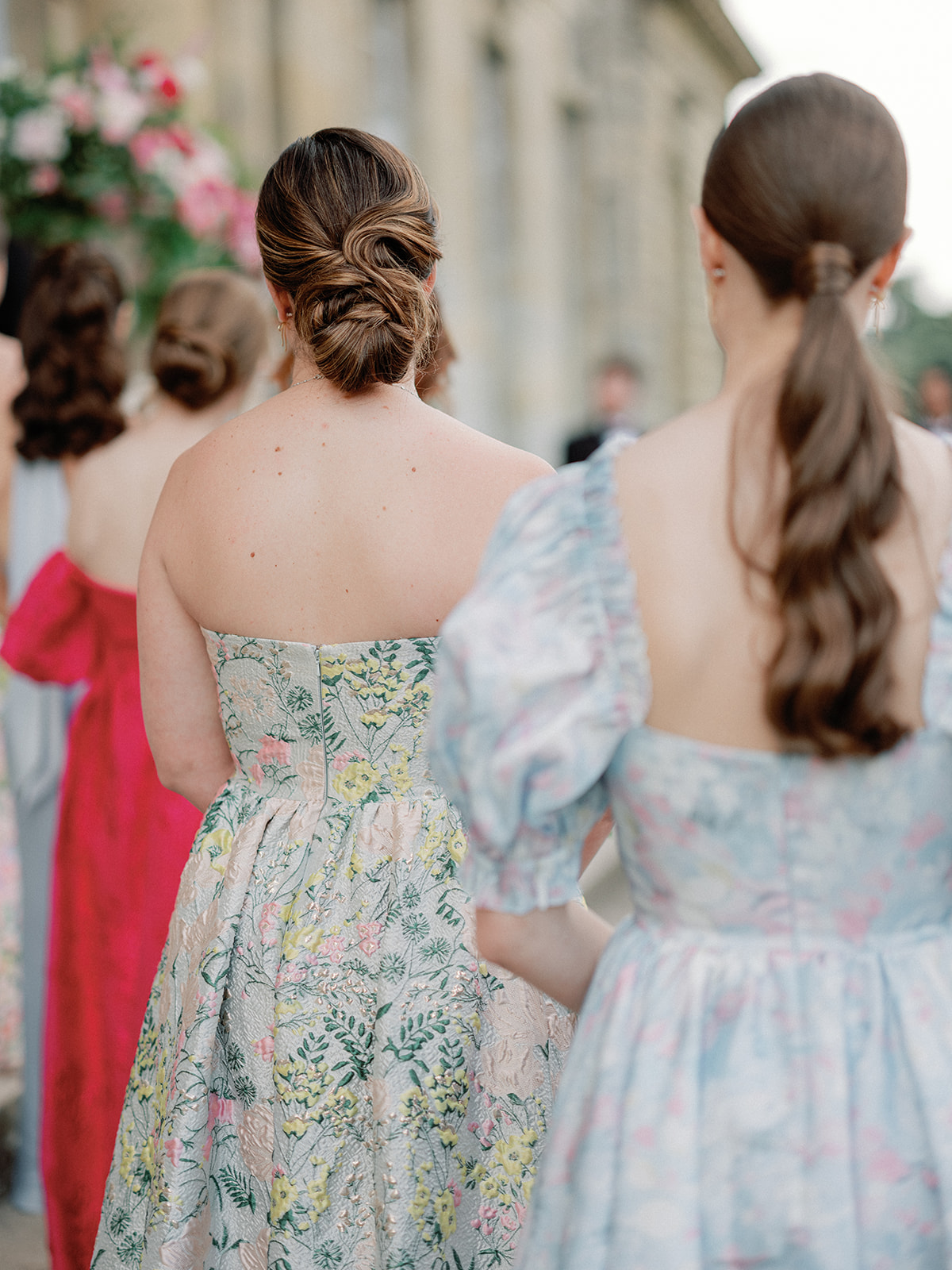 The Closerie’s character is different from the château’s formal grandeur: warmer, more domestic, with the quality of a well-loved garden cottage. Getting-ready photographs here have a quality of intimacy and ease that sets them apart from the more architectural images the château’s salons produce — a useful contrast that gives the day’s portrait sequence a wider emotional range.