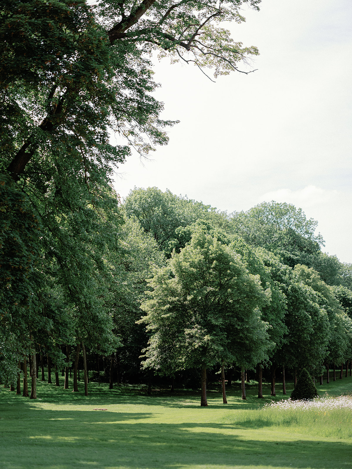 There is a particular kind of arrival that I think every couple deserves on their wedding day — the moment the car turns through the gates and the property appears and something about it simply confirms that yes, this is the right place. At Château de Varennes, that moment is the tree-lined driveway. The avenue of mature trees draws you toward the château in the way that only a property with centuries of intention behind its landscaping can, and by the time the building comes into full view — the grand façade, the formal gardens stretching beyond, the lavender fields visible in the distance, and the sense of 100 private acres unfolding around you — the arrival has done its work.