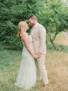 Their casual looks felt relaxed and natural—perfect for wandering through the grassy fields and along the park’s trails. The dressier outfits brought a more elevated, romantic feel near the water. Having both options means couples walk away with a gallery that feels well-rounded, giving them more flexibility for save-the-dates, wedding websites, framed prints, and albums.