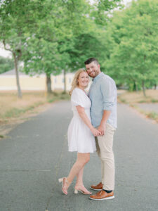 The day of their engagement session was lightly overcast, which honestly couldn’t have been more perfect. No harsh shadows, no squinting, and no one overheating in the summer sun. Instead, the light was soft and forgiving, allowing us to focus on movement, connection, and candid moments.
