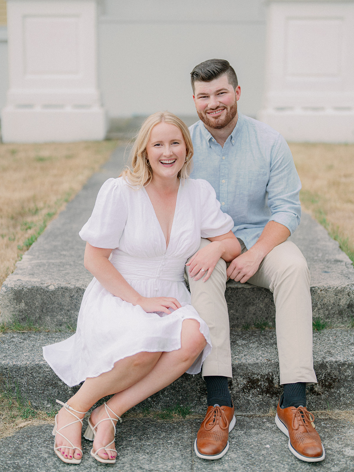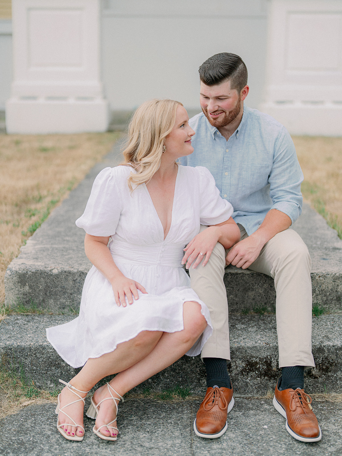 Neutral outfits are always a favorite recommendation of mine—especially for Discovery Park—because they allow the scenery and the couple’s connection to take center stage. Everything felt calm, cohesive, and very true to who they are.
