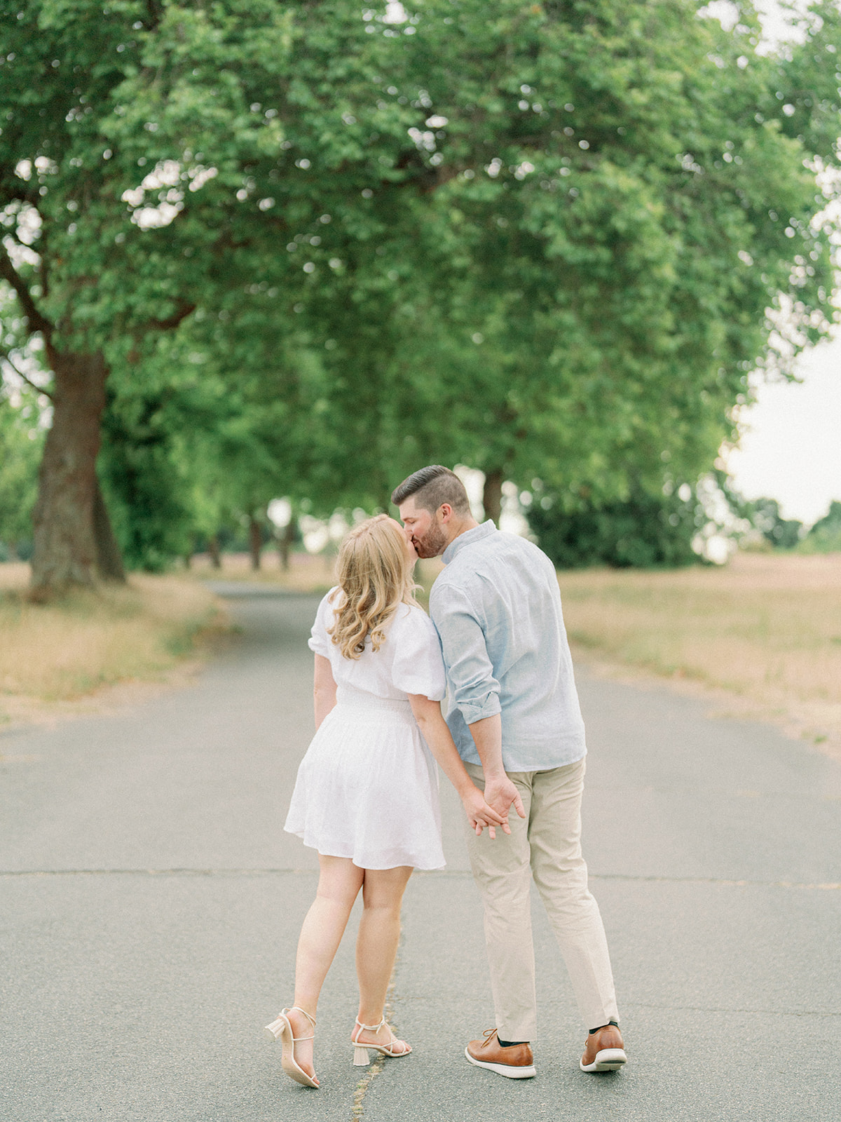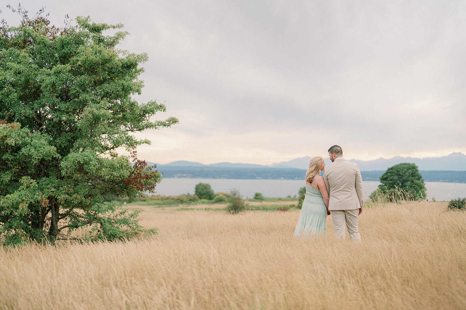 There’s something incredibly calming about a summer engagement session filled with soft, neutral tones—especially when it takes place at Discovery Park. This session was a perfect reminder that sunshine isn’t required for beautiful photos. The slightly overcast skies gave us the most even, flattering light, and the entire experience felt relaxed, comfortable, and effortless.