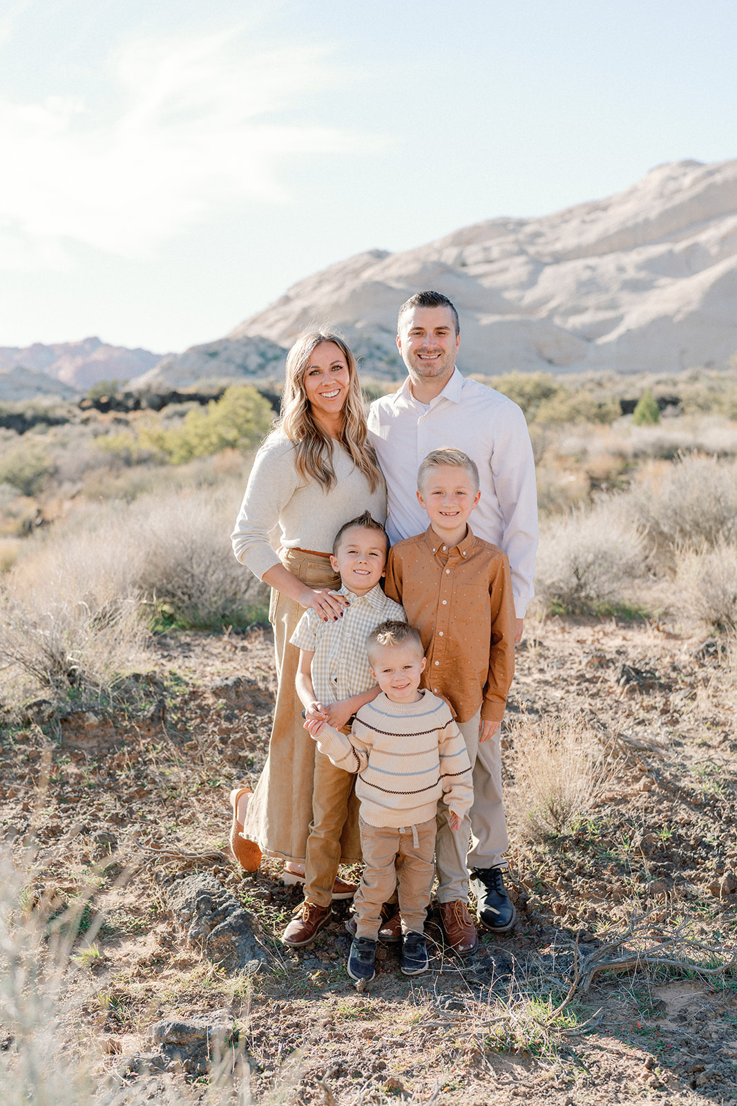 St. George in the winter is dramatically different than Salt Lake or the mountains. While northern Utah may be covered in snow from November through March, St. George often stays mild and dry. It’s common to have 50–65 degree winter days there, which makes it perfect for families who want outdoor photos without freezing.