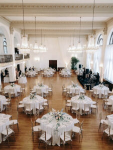 The main reception hall is a spacious indoor room that can accommodate dining, dancing, and entertainment. The room itself is elegant yet neutral, making it easy to style according to different wedding aesthetics.