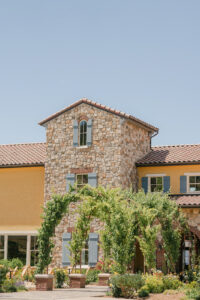 The property combines the visual language of an Italian agriturismo — stone pathways, grapevine-covered pergolas, warm wood and terracotta details — with the California wine country ease that makes everything feel slightly more relaxed than its European counterpart. Ceremony spaces look out over vineyard rows. Reception spaces are sheltered but open to the valley air.